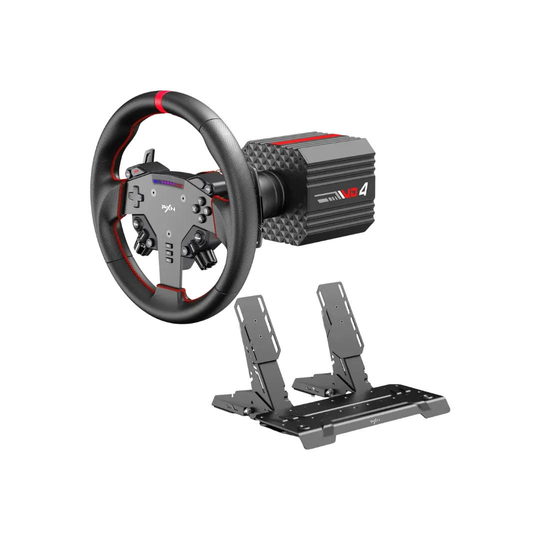 - VD4 Bundle F & Compatibility: The VD4 Bundle F includes: PXN VD4 direct drive base, W AS racing wheel, PD HM Brake&Throttle, USB cables, and user manual. Compatible with PC simulators such as iRacing, Assetto Corsa, F1 series, and more. Backed by PXN’s 12-month warranty and professional customer support. Note: ONLY for PC windows 7-11.