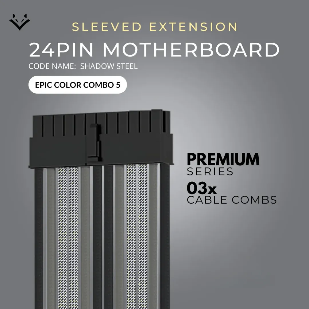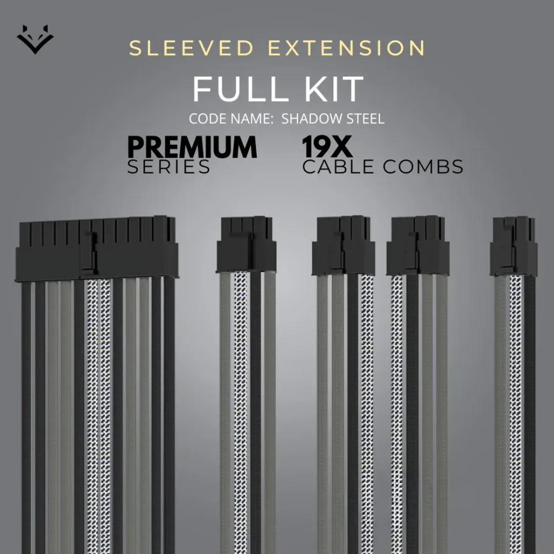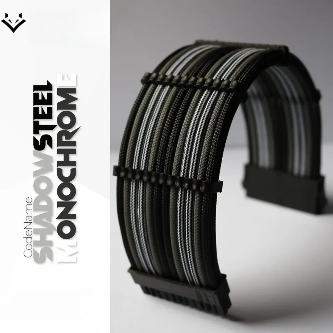 EPICMOD Premium Series – Shadowsteel Monochrome – Sleeved Extension PC Cable – 18AWG option – 24PIN ATX, 8PIN(6+2) GPU