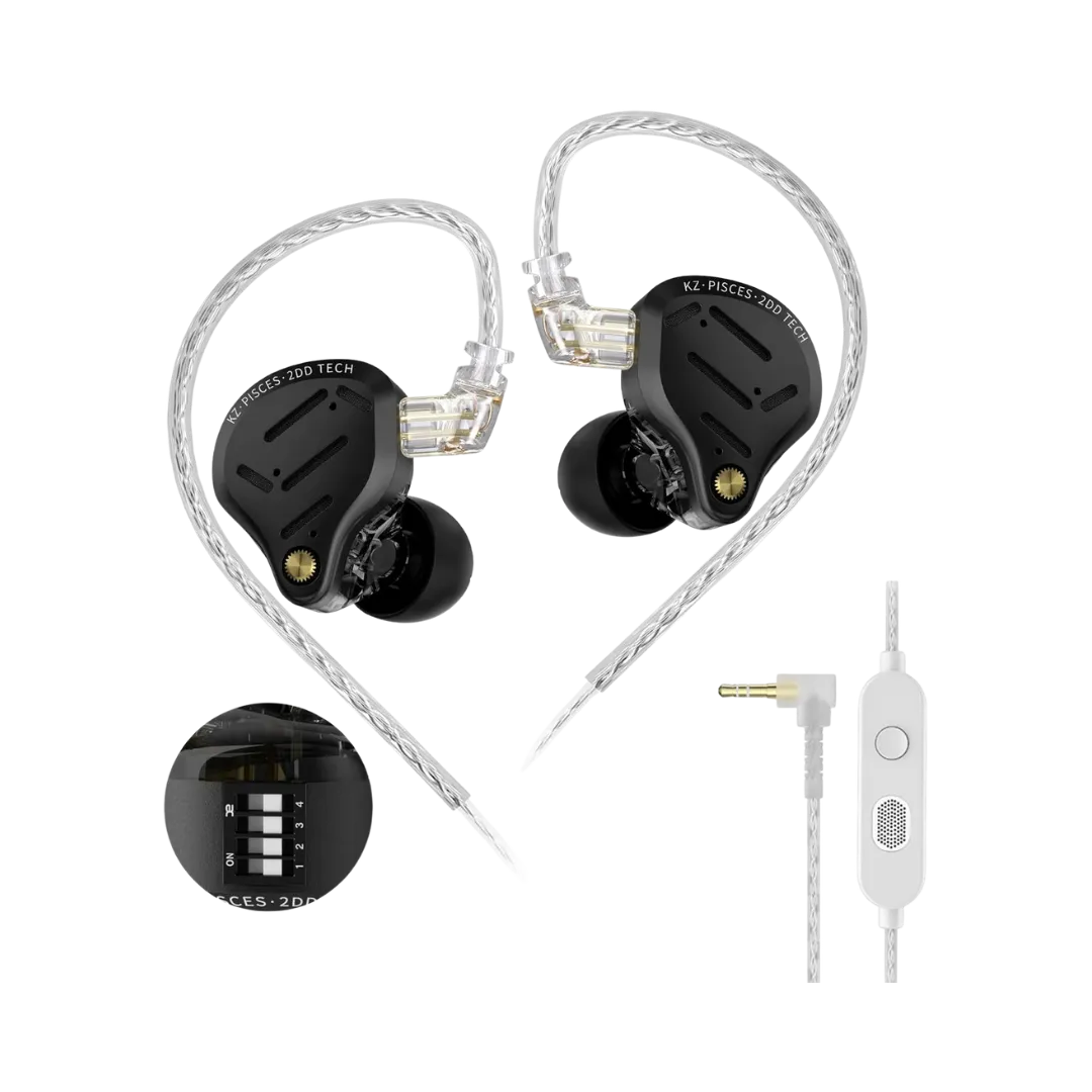 KZ Pisces in-Ear Monitors Headphones, Dual Dynamic Driver IEM with 4 Tuning Switches, Clarity in All Frequency Stereo Sound Comfortable Noise Isolating Earbuds for Stage and Studio (Tuning, Mic)