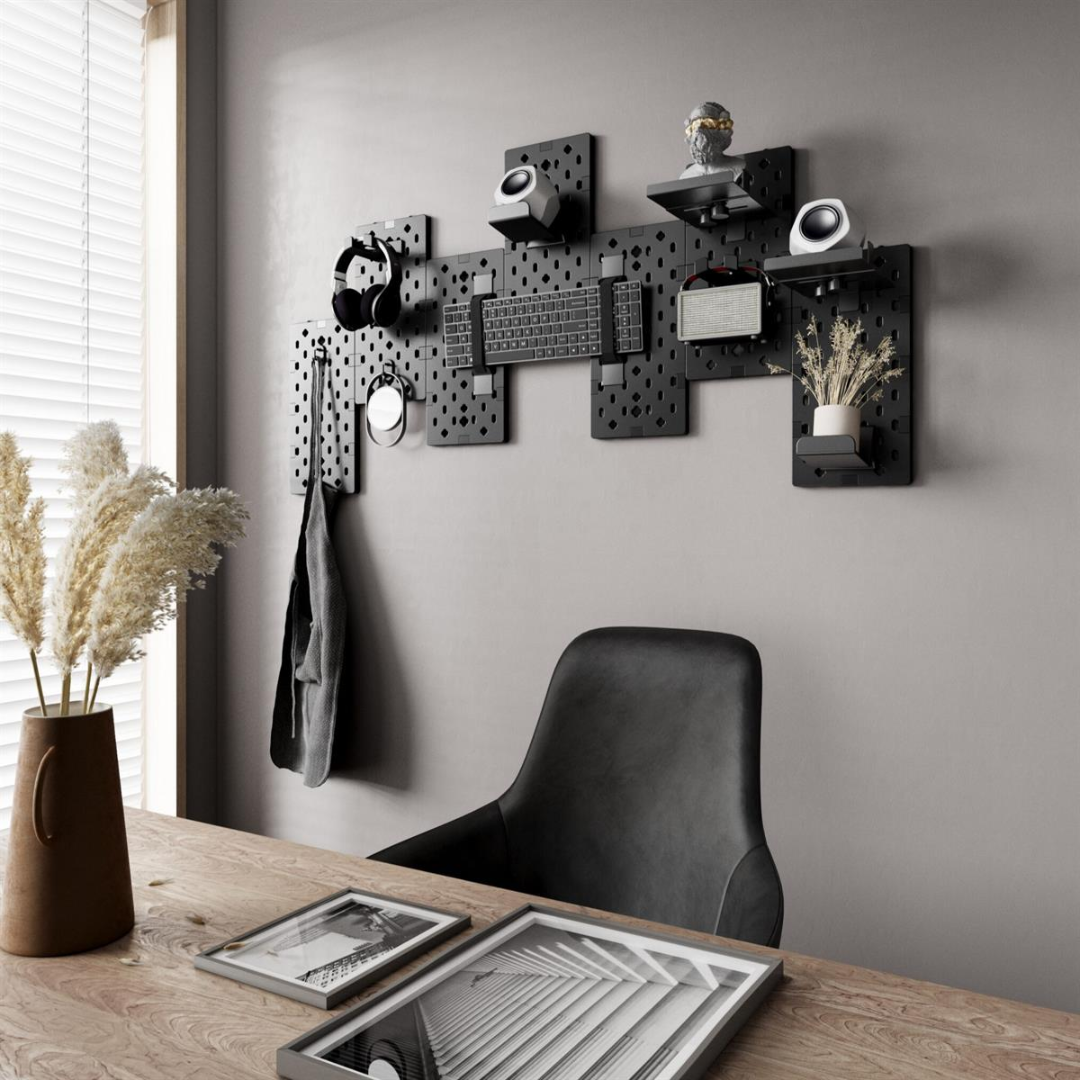 The first modular pegboard in the world- 7 pegboards for fastener assembly, personalizing display walls for gamers. Includes a variety of storage kits to provide storage space for gaming accessories. 15kg (33lbs) sturdy design firmly holds headphones, keyboards, discs, and more to create a showy design.