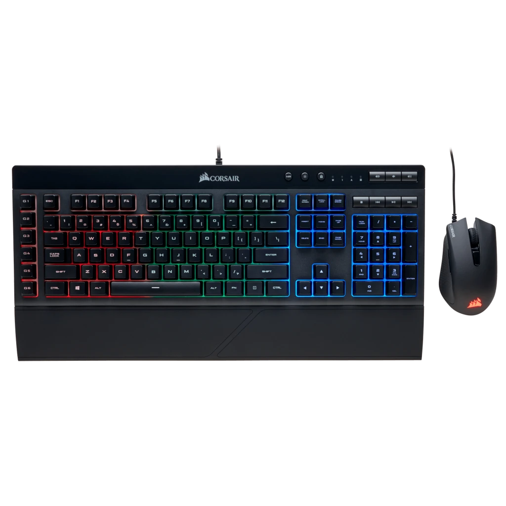 The K55 and HARPOON RGB Gaming Keyboard and Mouse Combo is your first step toward winning and features programmable macro keys, high-performance 6000 DPI mouse sensor and full iCUE support.